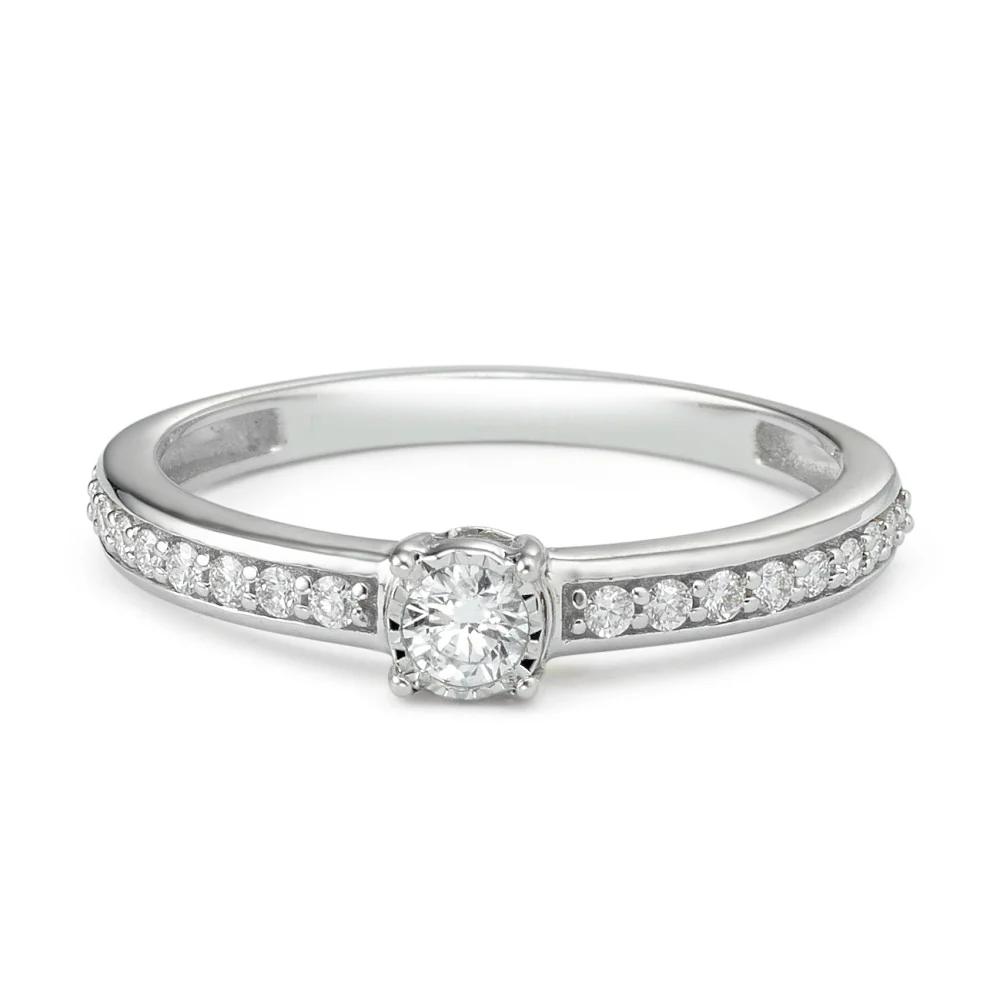 Bague solitaire Or blanc 9K Diamant 0.20 ct, 19 Pierres, w-si