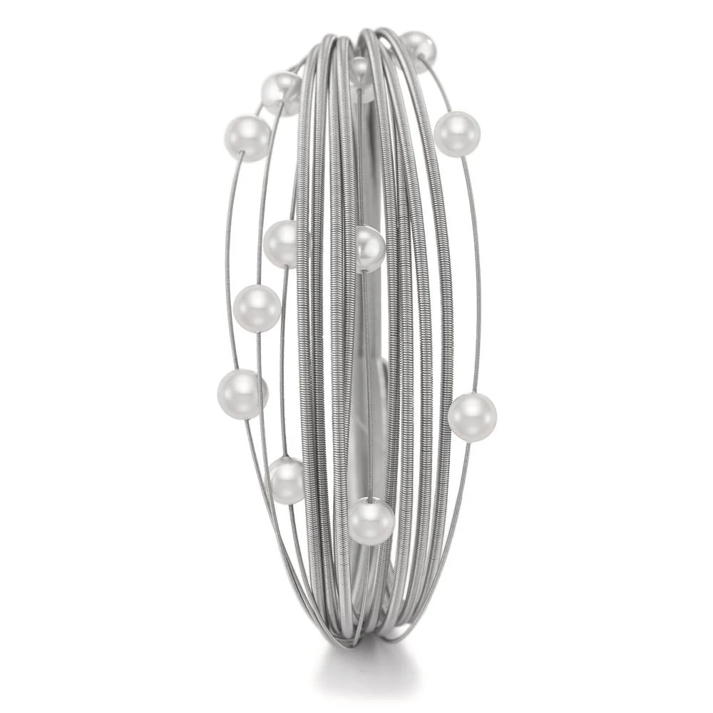 Bracelet Acier inoxydable perle de culture blanc, 12 Perles, 5 mm—