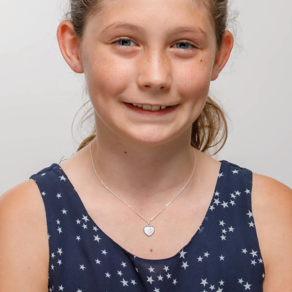 Jolie chaîne pour bébé en argent avec pendentif cœur orné d'un ange gardien. Un bijou délicat et symbolique, parfait pour offrir protection et tendresse à votre enfant. Un cadeau précieux pour garder un ange près de soi dès les premiers instants.