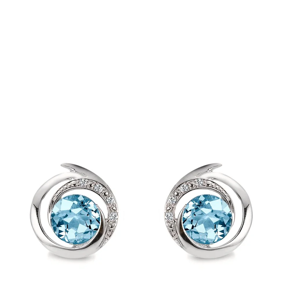 Clous d'oreilles Or blanc 18K Topaze bleu, 2 Pierres, Diamant blanc, 0.03 ct, 6 Pierres, brillant, w-si Ø11 mm