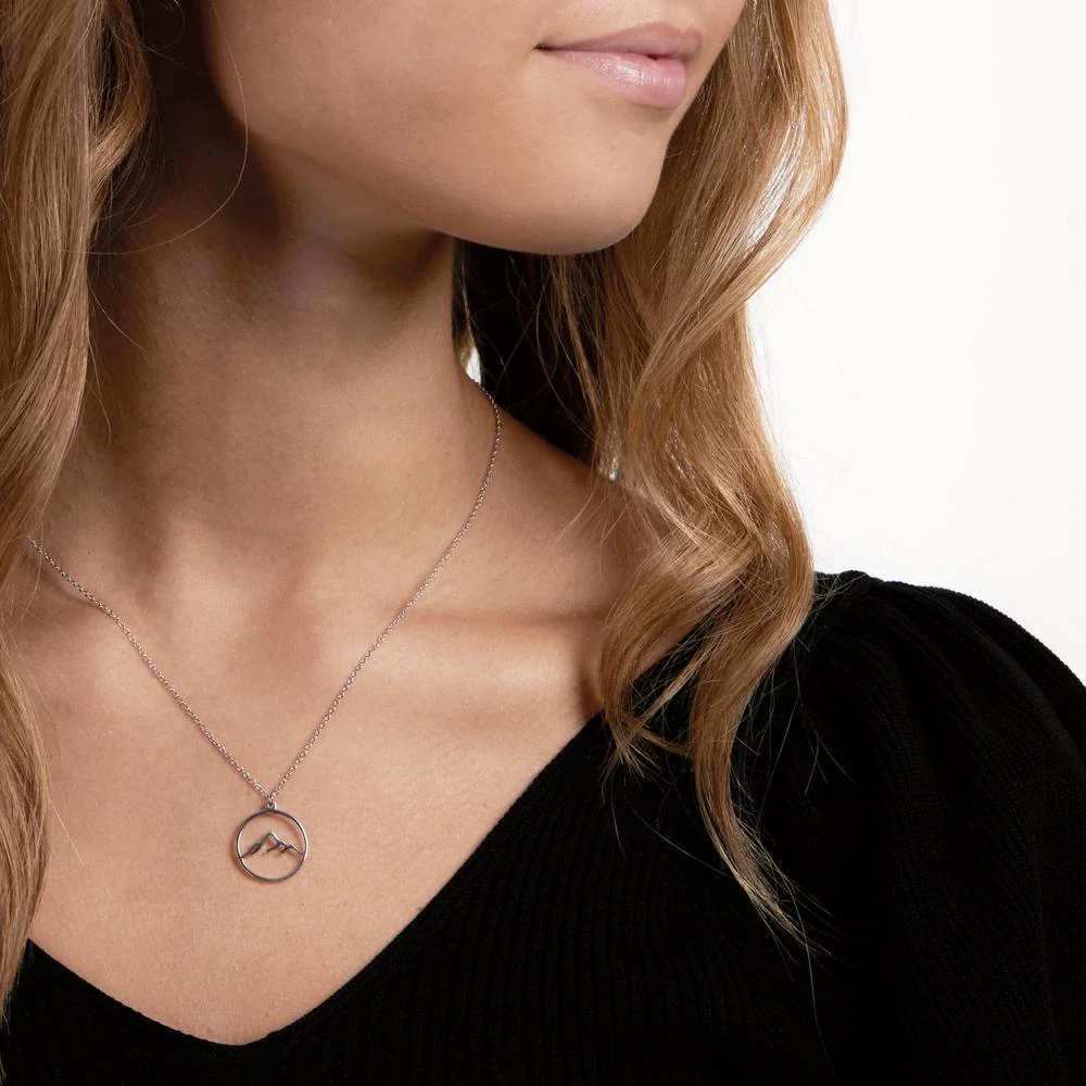 Collier pour fille en argent, au design élégant représentant une montagne stylisée dans un cercle. Un bijou raffiné et moderne, parfait pour accompagner toutes les tenues avec une touche naturelle et délicate. Idéal comme cadeau pour les amoureuses de la nature.